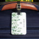Den här vackra och trendig bagagetaggen har en enkel och elegant grönt med vattenfärgen eukalyptus, med ett monogram eller en nyhet i modernt manusyrgrafi på vit bakgrund.