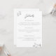 Eukalyptusblad, handritade med grafitpenna, skiktade i vitt guld, pryder detta enkla men sofistikerade, eleganta och traditionella men chic och moderna bröllopsinbjudan detalj-kort. Den ursprungliga pennkonsten ger det en unik och originell look, som höjer denna klassiker till en modern och uppfriskande tolkning av en traditionell bröllopsinbjudan design.