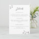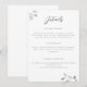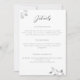 Eukalyptusblad, handritade med grafitpenna, skiktade i vitt guld, pryder detta enkla men sofistikerade, eleganta och traditionella men chic och moderna bröllopsinbjudan detalj-kort. Den ursprungliga pennkonsten ger det en unik och originell look, som höjer denna klassiker till en modern och uppfriskande tolkning av en traditionell bröllopsinbjudan design.