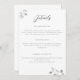 Eukalyptusblad, handritade med grafitpenna, skiktade i vitt guld, pryder detta enkla men sofistikerade, eleganta och traditionella men chic och moderna bröllopsinbjudningsdetaljkort. Den ursprungliga pennkonsten ger det en unik och originell look, som förhöjer denna klassiker till en modern och uppfriskande tolkning av en traditionell bröllopsinbjudningsdesign.