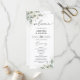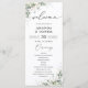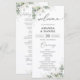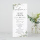 Det eleganta eukalyptusbröllopsprogrammet har elegant eukalyptusgrönska i par med en ren och raffinerad layout, vilket skapar en tidlös och sofistikerad design. Detta program är perfekt för att guida gästerna genom er ceremoni samtidigt som det kompletterar grönska, trädgård eller naturinspirerade bröllopsteman. Dess eleganta botaniska stil koordinerar vackert med matchande brölloppsmaterial och hjälper till att skapa en sammanhängande och polerad brölloppssvit.