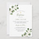 Minimalistisk modern pojke eller flicka Dop / Dop inbjudan med akvarell eukalyptus grönska blad grenar och guld kors.