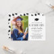 Fira din examen med denna eleganta inbjudan till examensfest som har en djärv, stiliserad "Examen"-typografi i serif med raffinerad script och ett porträtt av en senior för en polerad, sofistikerad look. Baksidan visar ett spritt mönster av studentmössor som ger en festlig touch samtidigt som designen hålls sammanhängande. Fullt anpassningsbar text gör det enkelt att lägga till alla dina festdetaljer.
