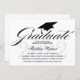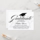 © Socialite Designs. Vår eleganta skrivstil / kalligrafi "graduate"-text och examensmössa, med svart text på vit bakgrund, ger en touch av enkel elegans till denna examensinbjudan. Bakgrunden har en subtil grå årtal-vattenstämpel. Baksidan av inbjudan har en elegant ornamentdesign med "Årskull" och årtalstext. Byt enkelt ut vår malltext mot din egen speciella händelse.