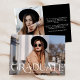 Modern examensannonsering med examen kandidatens horisontella foto utan kant på framsidan med "Examen" visad i en elegant vit textöverlagring. Anpassa framsidan av den enkla examensannonseringen med examen kandidatens namn och examensår. Annonseringen vänds för att visa ett ytterligare foto med ditt personliga meddelande. 2-foto examensannonseringen är perfekt för både gymnasie- och högskoleexaminerade.