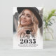 Ett enkelt och elegant boho-inspirerat examensbevis med fotokollage för en personlig, tidlös look. Framsidan visar tre bilder arrangerade i en ren kollagelayout, inramad av en skarp vit kant. Överst visas “Class Of 2026” (eller valfritt år) i en raffinerad blandning av flytande skrivstil och klassiska serif-teckensnitt, med en liten examenshatt detalj ovanför för en subtil festlig accent. Den utexaminerades namn och skola visas nedan i mjuka grå serif-teckensnitt för en återhållsam, polerad finish.