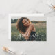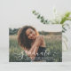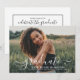 Låt din seniors porträtt ta centerplatsen med denna eleganta inbjudan till examensfest som har en svepande "graduate" kalligrafisk skrift i vitt över ett bildutsnitt som går till kanterna. Baksidan håller festdetaljer rena och organiserade med en mix av kalligrafi och serifstil accentuerad av enkla linjedetaljer. Fullständigt anpassningsbar text på båda sidor gör det enkelt att anpassa.