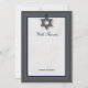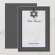 Eleganten Pub Mitzvah tackkort är perfektens sätt att uttrycka tacksamhet efter er dotters stora dag. Gräns har en trendpalett med en penntunn kontur i ett kompletterande färg. En stjärna av David förankrar designen och ett vackert, vitt näsduk i bakgrunden. Och all tryckt information kan anpassas till din sons namn och händelsemedagen.. fyll bara i fält!