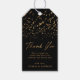 Dessa vackra bröllopsfavoriter har många märkre som sitter ihop i faux guld-folie över en ren svart bakgrund. Faux guld står "Tack" i snyggt typografi. Fåglarna med en luddrubrik visar hur viktigt det är att paret går med i giftermål. Elegant, klass, modern och unik - perfekt för gäster på din speciella dag!