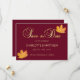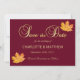 För det fall/hösttemat bröllop är det lätt att redigera dessa vackra burgundi, djupa rött, maron, marsala och guld SPARA DATE-mallkort. FALLER I KÄRLEK i guld topografi och guld orange metallisk löv ge, dessa kort är en extra elegans. Kortets baksida har faux guld hjärta med brud och brudgumms monogram. Kontaktdesigner för fler varianter.