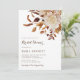 Elegant Fall Watercolor Botanical Inbjudningskort för möhippan. Den här eleganten och den roliga bröllopsinbjudan innehåller handmålad vattenfärg, bränd orange och terracotta löv, kräm och beige dahlias, och vacker rost-färgad ro perfekt för höst- eller vinterbröllop! Baksidan av inbjudan har ett blommönster att matcha teckningen på framsidan.