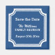 Elegant Familjeåterförening Spara datum magneter. Cute-påminnelse till din familj samlas, samlas, träffas, bq, middag party osv. Snyggt, typografi och gräns. Anpassningsbar färg. Blått och vitt.
