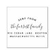 Den moderna familjen och eleganten namn returadress självinkande gummi frimärke. Med den här designen får du en egen familj namn i handskriven kalligrafi och adress-detaljer i ett enkelt sans serif-teckensnitt. Överst i designen finns det "som skickas från" i samma typsnitt som detaljerna i adress. Perfekt för alla tillfälle. Lägg till en personlig beröring till din e-post med den här designen! Kontakta oss gärna om du har några frågor!