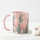 Elegant Family Namn Monogram Peach Tulips-målning Mugg