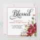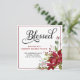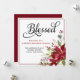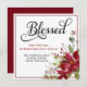 Skicka helgdag till familj och vänner med det här enkla kortet och eleganten. Med röd blommigt, med "välsignad" i modern skripttypografi och personlig med Julhälsningar och namn. Design ©Rosalind Moore, Cherry Lane Dedesign