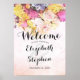 Bröllop Välkomstskylt Affischer Mallar - Eleganta Färgrika Vattenfärg Blommor och Handskriven Skrift på Vattenfärg Stänk Bakgrund.