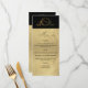 Elegant Black and faux guld foil bröllop Middag Menu-kort med exquisite hand plockade monogram i faux guld foil. Utformning med ett svart gräns överst som visar monogrammet i guld-faux-folie. Grund-delen i ett vackert faux-guld-folie med bakgrundstryck och svart text. Modern skriftlig information om kalligrafi. En del av vår "Black and Guld Monogram Bröllop Collection" med en mängd olika samordningsprodukter tillgängliga. Besök hela samlingen på: https://www.zazzle.com/collections/black_and_gold_monogram_wedding_collection-119092477004367833