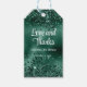 En bröllop-märkre med elegant faux grönt glitter och foil bakgrund.