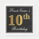 Den här enkla och elegant pappra napkin-designen innehåller ett meddelande som "FirstName's 10 Birthday" (med "10:e" som har en faux-guld-liknande färg) i en svart färgad med en enkel gräns-kontur. Namn är i en text som liknar en skript med vit färgad och kan anpassas. Napkins som dessa kan kanske användas i en födelsedagsfest till någon som firar sin tioårsdag. [~Z0000136]