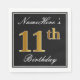 Den här enkla och elegant pappra napkin-designen innehåller ett meddelande som "Namehär's 11 Birthday" (med "11:e" som har en faux-guld-liknande färgning) i en svart färgad med en enkel gräns-kontur. Namn är i en text som liknar en skript med vit färgad och kan anpassas. Napkins som dessa kan kanske användas i en födelsedagsfest till någon som firar sin elfte födelsedag. [~Z0000136]