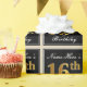 Denna enkla och eleganterna pappra utformning har ett personlig som "Namn-här's 16:e födelsedag" (där "16:e" har ett utseende som påminner om guld-) i en kvadrat med svart färgad med en enkel gräns-kontur. Namn är i en elegant som är skript som liknar den vita färgaden och kan vara personlig. Att packa pappert som detta skulle kanske kunna användas när man fyller på födelsedagskalkyl för någon som firar sin sextonde födelsedag. [~Z0000217]