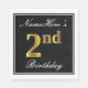 Den här enkla och elegant pappra napkin-designen innehåller ett meddelande som "Namehär's 2nd Birthday" (med "2nd" med en faux-guld-liknande färgning) i en svart färgad med en enkel gräns-kontur. Namn är i en text som liknar en skript med vit färgad och kan anpassas. Napkins som dessa kan kanske användas i en födelsedagsfest till någon som firar sin andra födelsedag. [~Z0000136]
