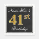 Den här enkla och elegant pappra napkin-designen innehåller ett meddelande som "Namn-här's 41:a födelsedag" (där "41:a" har ett utseende som liknar guld) i en kvadratisk färgad med en enkel kontur från gräns. Namn är i en text som liknar en text med en vit färgad och kan vara personlig. Napkins som dessa kan kanske användas i en födelsedagsfest till någon som firar sin fyrtioårsdag. [~Z0000136]