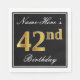 Den här enkla och elegant pappra napkin-designen innehåller ett meddelande som "Namn-här's 42:a födelsedag" (med "42:a" som har ett utseende som liknar guld) i en kvadratisk färgad med en enkel kontur från gräns. Namn är i en text som liknar en skript med vit färgad och kan anpassas. Napkins som dessa kan kanske användas i en födelsedagsfest till någon som firar sin fyrtioandra födelsedag. [~Z0000136]