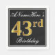 Den här enkla och elegant pappra napkin-designen innehåller ett meddelande som "ANamehär's 43:e födelsedag" (med "43:e" färgen faux guld-like) i ett fyrkantigt område med svart färgad med en enkel gräns-kontur. Namn är i en text som liknar en skript med vit färgad och kan anpassas. Napkins som dessa kan kanske användas i en födelsedagsfest till någon som firar sin fyrtiotredje födelsedag. [~Z0000136]