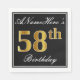 Den här enkla och elegant pappra napkin-designen innehåller ett meddelande som "ANamehär's 58:e födelsedagen" (med "58:e" färgen faux guld-lik) i en kvadrat med svart färgad med en enkel gräns-kontur. Namn är i en text som liknar en text med en vit färgad och kan vara personlig. Napkins som dessa kan kanske användas i en födelsedagsfest till någon som firar sin femtioåttonde födelsedag. [~Z0000136]