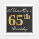 Den här enkla och elegant pappra napkin-designen innehåller ett meddelande som "ANamehär's 65e Birthday" (med "65en" som har en faux-guld-liknande färgning) i ett fyrkantigt område med svart färgad med en enkel gräns-kontur. Namn är i en text som liknar en text med en vit färgad och kan vara personlig. Napor som dessa kan kanske användas i en födelsedagsfest till någon som firar sin sextiofemårsdag. [~Z0000136]