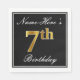 Den här enkla och elegant pappra napkin-designen innehåller ett meddelande som "Namn-här's 7:e Birthday" (där "7:e" har en ytliknande färg för guld) i en kvadrat med svart färgad med en enkel kontur från gräns. Namn är i en text som liknar en text med en vit färgad och kan vara personlig. Napkins som dessa kan kanske användas i en födelsedagsfest till någon som firar sin sjunde födelsedag. [~Z0000136]