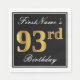 Den här enkla och elegant pappra napkin-designen innehåller ett meddelande som "FirstName's 93 Birthday" (med "93:e" som har en faux-guld-liknande färgning) i en svart färgad med en enkel gräns-kontur. Namn är i en text som liknar en text med en vit färgad och kan vara personlig. Napkins som dessa skulle kanske kunna användas i en födelsedagsfest till någon som firar sin 90 tredje födelsedag. [~Z0000136]