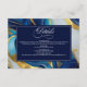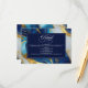 Kort för inneslutning i bröllop med faux guld, blå och vit marmorerad utformning.