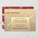 Elegant, ett enkelt och modernt kalligrafi-skript faux guld bröllop spara datum inbjudan med en unik lyx blommigt snöre och röd baksida.