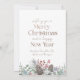 Skapa ett förbluffande första intryck den här säsongen med en julkortsmall som blandar tidlös konst med modern elegans. Ditt favoritfoto är vackert inramat i en krandformad självhugg, omgiven av en handmålad vattenfärgad illustration av gräs, röda bär och lush Julgrey. Ett fet "God jul" hälsning i en luxuriös faux-guld-metallisk avsluta ger en festlig, högspänd beröring. Den rena, minimalistiska layouten ger helgdag värme, charm och sofistikering