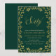 Elegant 60:e Födelsedagsfest inbjudan med gräns av löv och ord 60 i faux guld mot gröntens bakgrund. Kortet innehåller en matchande baksida av grönten. Anpassa den genom att ersätta platshållartexten för att lägga till informationen. Om du vill ha fler alternativ klickar du på knappen "Anpassa". *Observera att Zazzle Watermark som visas i zoomförhandsvisningen INTE visas på den färdiga tryckta produkten. © Rosewood and Citrus