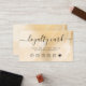 De här elegantens förmånskort har en faux guld marble-bakgrund. Ditt namn visas i trendiget för manuell skripttypografi med svart skrift. En minimal och modern glasdesign som är både professionell och snyggt. Perfekt för makeup artist, hårstilist, skönhetssalon eller spa-arbetare.