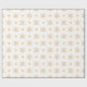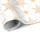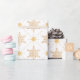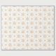 Omslagning papper med elegant faux guld foil imitation snöflingor och stjärnor mönster på vit bakgrund.