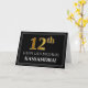 Framsidan av denna lyxiga och respektabla födelsedag med hälsningskortet har ett stort ordnummer "12:e" som har ett utseende som inspirerats av faux/imitation guld, budskapet "LYCKLIG 12:E BIRTHDAY,", en personlig mottagare namn och en gräns mönster som består av tunt linjer på svart färgad. Insidan innehåller ett hälsning-meddelande från anpassadets födelsedag, eller kan kanske tas bort och lämnas tomt om ett meddelande ska skrivas för hand i stället. Ett sådant här hälsningskort för personligens födelsedag kan användas för att bekräfta någons tolfte födelsedag. [~Z0000464]