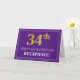På framsidan av denna lyxiga och finare-födelsedagskalender har hälsningskortet ett stort ordnummer "34:e" med ett imitation/faux guld-inspirerat utseende, budskapet "LYCKLIG 34:e BIRTHDAY", en redigerbar mottagare namn, och ett gräns mönster som består av tunt linjer, på en lila färgad. Insidan innehåller ett hälsning-meddelande från anpassadets födelsedag, eller kan kanske tas bort och lämnas tomt om ett meddelande ska skrivas för hand i stället. Ett sådant här redigerbart födelsedag kan användas för att bekräfta någons trettiofjärde födelsedag. [~Z0000484]