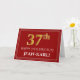 På framsidan av denna lyxiga och finare-hälsningskort finns ett stort ordnummer "37:e" med ett imitation/faux guld-inspirerat utseende, meddelandet "LYCKLIG 37:e BIRTHDAY,", en anpassningsbar mottagare namn och en gräns mönster som består av tunt linjer mot en röd färgad. Insidan innehåller ett redigerbart hälsning-födelsedagsmeddelande, eller så kan det kanske rensas och lämnas tomt om ett meddelande ska skrivas för hand i stället. Ett anpassat födelsedag som detta kan vara ett elegant sätt att skicka önskemål till någon som firar sin trettiosjunde födelsedag. [~Z0000467]