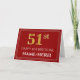 På framsidan av det här hälsningskortet i finare och elegant finns ett stort ordnummer "51st" med ett utseende som inspirerats av faux/imitation guld, meddelandet "LYCKLIG 51ST BIRTHDAY,", en personlig mottagare namn och en gräns mönster som består av tunt linjer på en röd färgad. Insidan innehåller ett hälsning-meddelande från personligens födelsedag, eller kan kanske tas bort och lämnas tomt om ett meddelande ska skrivas för hand i stället. Ett hälsningskort för personligens födelsedag som detta kan vara ett elegant sätt att leverera önskemål till någon som firar sin femtioförsta födelsedag. [~Z0000467]