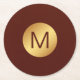 Elegant Faux Red Leather & Guld Monogram Initial Underlägg Papper Rund