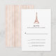 Dessa parisiska bröllop OSA-kort från stil visar en bild av Eiffel Torn från ro på vit bakgrund. Kortets baksida har matchande faux ro guld rand, men du kan ta bort dessa och lämna baksidan tom om du vill genom att anpassa objektet. Kontakta mig om du behöver hjälp.