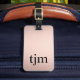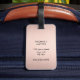 Elegant fully customizable luggage tag design with FAUX rose golden background, bold black monogram.