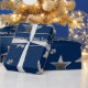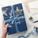 Julstenarna Stars Mönster Faux Silver Elegant julklappen Wrap, Blue Gift Wrapping Papprare med anpassningsbar text: "Vi önskar er en God jul! Med Kärlek, The Williams Family" kan du ändra eller ta bort texten