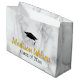 Gratulerar till student med den här personligen, vita marbelväskan. En svart grads sockel är överst, medan du vid grund kan lägga till student namn i faux guld-skript och klassår i svart text. All text kan anpassas eller tas bort.