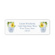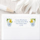 Den klassiska returadressetiketten är utformad med en vattenfärgad ingefära burk fylld med blå och vita blommigtar, täckt med feta solrosor.