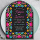 Den här vibranta Blommigten mexikanska fiestasbröllop med färg och firande fångar den glatta andan i en livlig fest. Med fet, handmålad blommigt i rikens fuchsiska nyanser, marigold, turkos och rött utstrålar den värme-, energi- och kulturcharm. Intricate blommigt accents and festive typography skapar en lekfull men elegant vibe, perfekt för par som planerar en bröllop-fullt av färg, musik och kärlek. Perfekt för sommaren firande, för destinationsbröllop, eller för alla som vill att deras stora dag ska börja med ett pulserande flage och festlig skönhet.